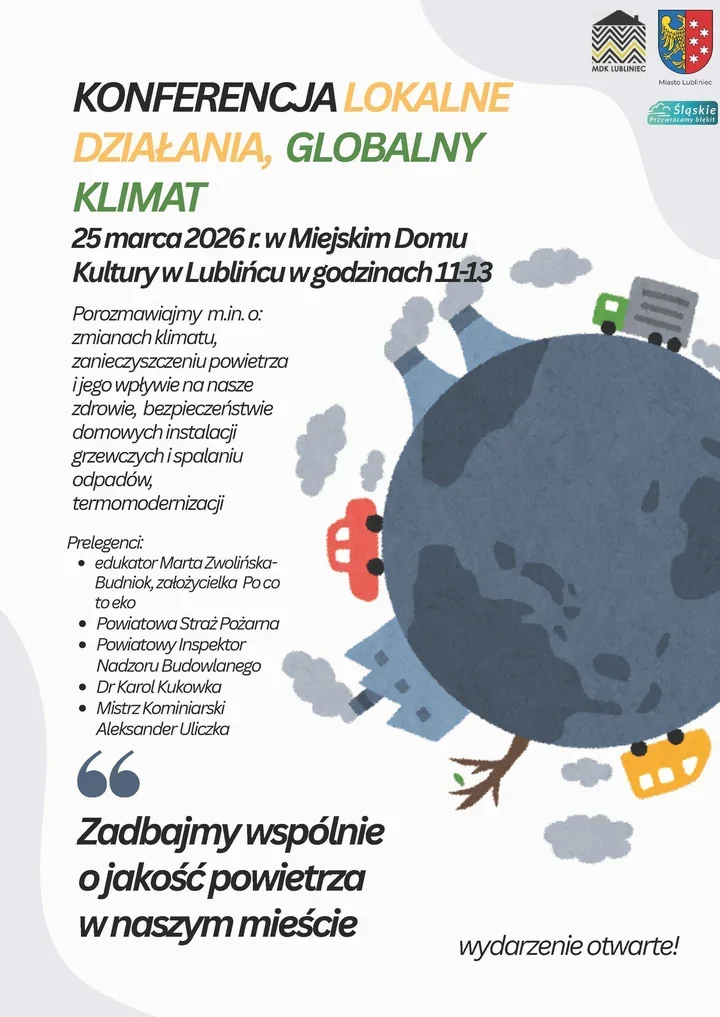 Konferencja odbędzie się 25 marca w Miejskim Domu Kultury w Lublińcu, w godzinach 11:00–13:00. Organizatorzy kierują ją do młodzieży, właścicieli domów i wszystkich, którzy chcą lepiej zrozumieć, jak klimat, jakość powietrza i domowe instalacje łączą się w jeden temat.
