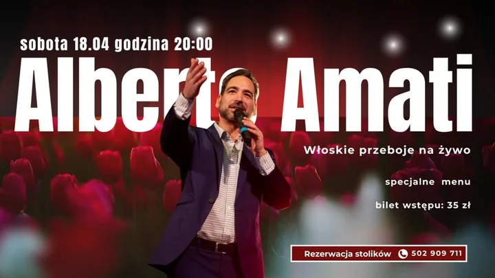 Albert Amati wypełni restaurację przebojami, które kojarzą się z ciepłem, energią i lekkim, wakacyjnym klimatem Całość zapowiada się jak spokojny, ale bardzo nastrojowy wieczór — idealny na wyjście w duecie albo spotkanie ze znajomymi.