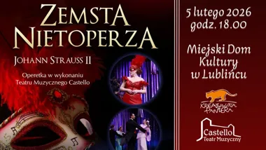 Teatr Muzyczny Castello zaprasza na przedstawienie operetkowe „Zemsta Nietoperza” — inscenizację znanego repertuaru operetkowego z muzyką J. Straussa II, przygotowaną przez solistów, zespół baletowy i orkiestrę teatru. Spektakl zapowiada trzy akty pełne intryg, pomyłek i tanecznych numerów, utrzymanych w klimacie klasycznej wiedeńskiej operetki.