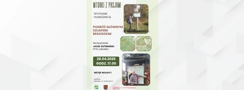 Górska przygoda bez pakowania plecaka i bez wychodzenia z miasta? Brzmi jak plan na dobry wtorkowy wieczór 28 kwietnia w Lubitece pojawi się okazja, by posłuchać o jednym z najbardziej znanych szlaków w polskich górach — Głównym Szlaku Beskidzkim. O swojej wyprawie opowie Jacek Gutmański z PTTK Lubliniec, więc można spodziewać się historii z pierwszej ręki, konkretnych wskazówek i sporej dawki górskiej energii. Warto wpisać tę datę w kalendarz i przyjść na to spotkanie.